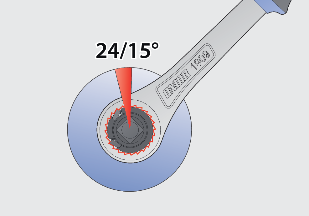 Работа трещотки с торцевыми головками основана на применении механизма с 75 зубцами, который делит окружность 360° на углы в 4,8° и, таким образом, гарантирует более простое использование в почти недоступных местах. Работая трещоткой с меньшим углом поворота и меньшим усилием, Вы можете достигнуть большей надёжности и более высокой точности.Точность